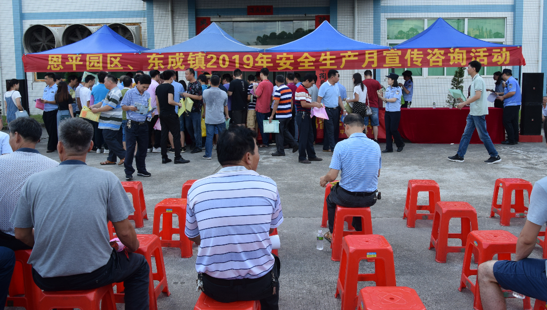 为深入开展2019年恩平园区、东成镇“安全生产月”系列活动,进一步提升企业和职工的消防安全意识和应急自救能力,6月21日上午,恩平园区、东成镇联合市应急管理局、市消防大队、东成派出所、河南派出所、东成镇卫生院等在恩平锦兴纺织印染企业有限公司举办以“防风险、除隐患、遏事故”为主题的安全生产事故应急救援演练。市应急管理局党组书记、局长陈育存,恩平园区、东成镇领导班子王润忠、李兵以及相关部门负责人等参加本次活动。东成镇各村(居)党支部书记、恩平园区、东成镇企业安全生产负责人、企业员工等约400人现场观摩了演练。