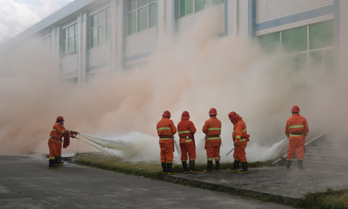 演练模拟锦兴公司3号仓库一楼一配电箱因线路短路产生火灾,现场产生大量的浓烟,车间部分员工被困,其中一名员工吸入浓烟晕倒,情况十分危急。安全管理人员发现火情后迅速报警并向恩平园区、东成镇安监局报告。恩平园区,东成镇安监局接报后,立即把情况向市应急管理局汇报,同时启东成镇应急救援预案,组织救援队伍到达现场,开展救援工作。最后,大火被扑灭,被困人员全部被成功救出。