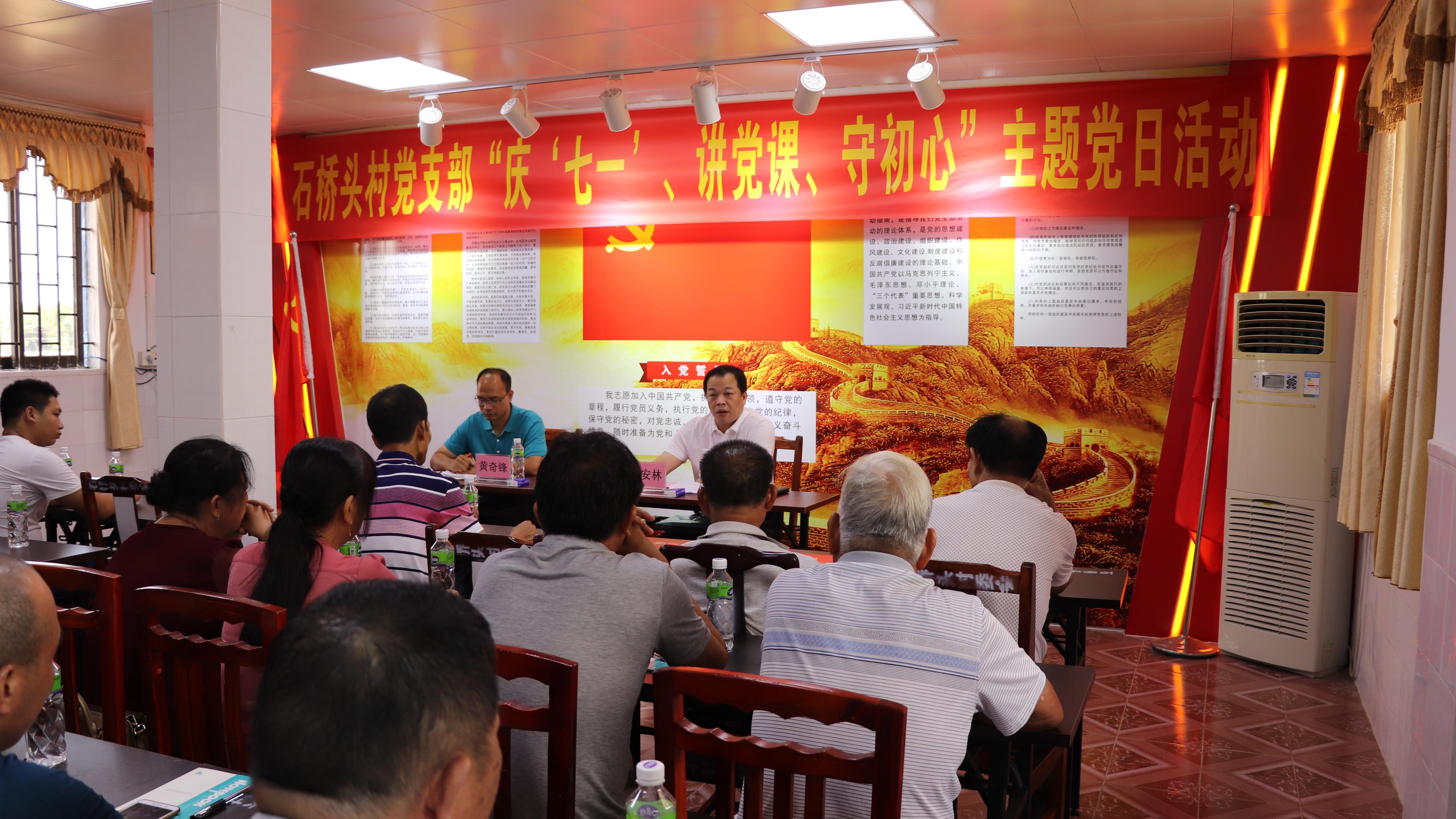活动上,岑安林同志为石桥头村党员干部上了一堂以“不忘初心再出发 牢记使命促振兴”为题的党课,和党员干部一同回顾、缅怀党的发展历程,号召全体党员要把不忘初心、牢记使命作为加强党的建设的永恒课题,作为党员干部的终身课题。讲话中,他向石桥头村的党员们通报了过去一年,东成镇委在基层党建、经济建设、民生保障、社会治理、环境保护等五方面取得的工作亮点,也总结了工作存在的短板。