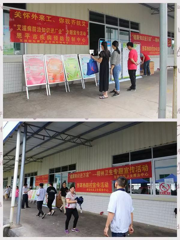 活动通过悬挂横幅,设立咨询摊位、进行义诊、摆放展板、派发宣传资料等形式,集中宣传健康素养66条、科学健身、脑卒中预防、高血压防治、糖尿病防治、登革热预防、艾滋病预防、精神卫生、职业卫生、禁毒等相关知识,重点提高人民群众对健康知识的知晓率,改善精神卫生工作社会氛围,保障企业员工的身心健康。