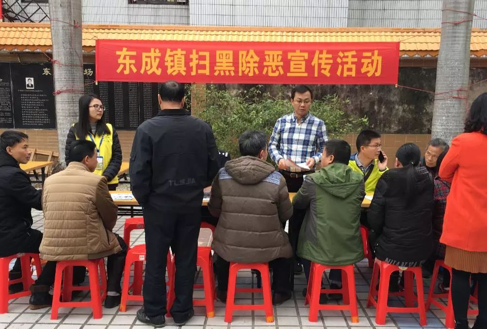 自扫黑除恶专项斗争工作开展以来,东成镇成立扫黑除恶工作领导小组,出台相关工作方案,各村(社区)张贴扫黑除恶通告、举报线索奖励办法等,并悬挂宣传横幅,全方位营造扫黑除恶专项斗争的浓厚社会氛围。新的一年,东成镇将继续加大工作力度,确保扫黑除恶专项斗争工作落到实处、取得实效。