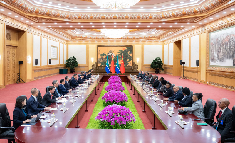 9月2日下午,国家主席习近平在北京人民大会堂同来华出席中非合作论坛北京峰会并进行国事访问的南非总统拉马福萨举行会谈。新华社记者 翟健岚 摄