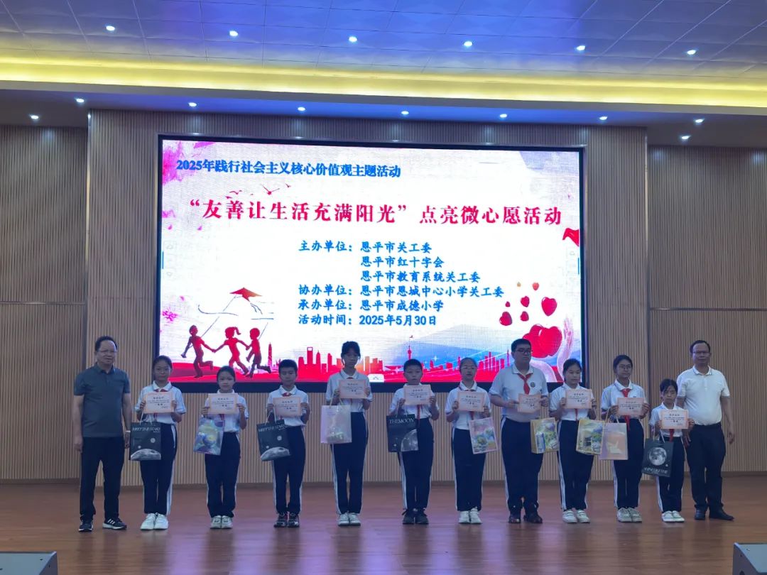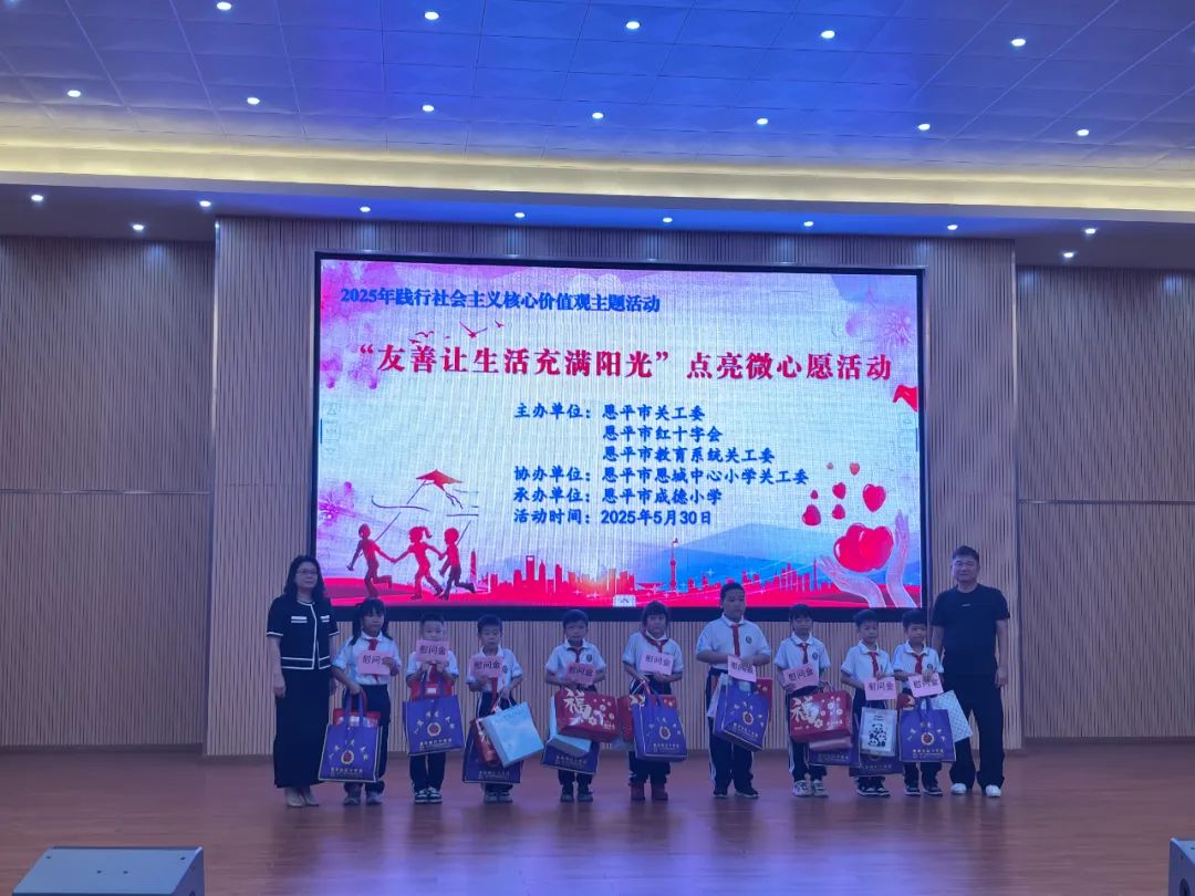 在“六一”国际儿童节来临之际,5月30日上午,快猫 成德小学洋溢着欢乐与温情,由快猫 关工委、快猫 红十字会、快猫 教育系统关工委等单位联合主办的“友善让生活充满阳光”点亮微心愿暨艺术节文艺展演在此隆重举行。此次活动采用现场开展与校内线上直播相结合的方式同步推进。相关单位领导、热心企业家与全校师生齐聚一堂,共同见证这场充满爱与温暖的盛会。