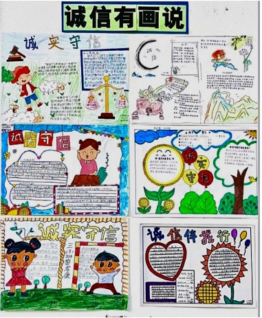 为了加深同学们对诚信的理解,将诚信的内涵深化于行为当中,少先队大队部组织各班选派学生代表参与“诚信伴我行”手抄报和绘画比赛。同学们用一幅幅精美的作品展示了自己对诚信的独特理解和诠释,不仅锻炼了动手能力和审美能力,也让诚信理念更加深入人心。