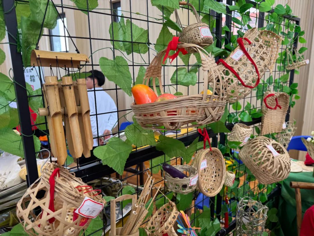 “同学们,蛋糕出炉啦!”“同学,你喜欢什么剪纸图案,我来帮你剪!”“这个是绒花戒指,还有发箍,你喜欢哪个?”……本次活动最热闹的环节莫过于劳动教育成果展示现场,场内人声鼎沸,师生们都在卖力推荐自己的劳动成果,每个摊位上的“产品”,都带着学生们的劳动和巧思。此次活动设立了22个摊位,每个摊位都由各学校进行了独一无二的设计,它们有的挂上了美丽海报,有的设计了精妙的展示台,展现美食、手工等劳动成果,有的带上了学校劳动教育的“镇校之宝”,吸引一波又一波的人流量。