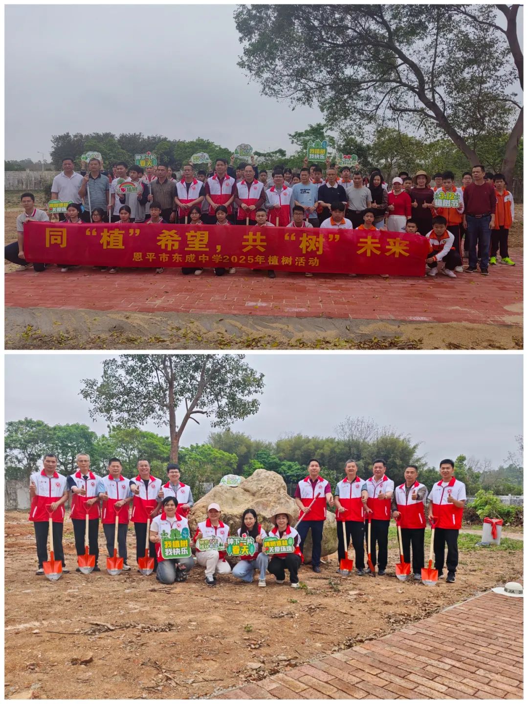 3月12日,正值植树节,快猫 东成中学在校内“校友林”区域举行“绿满东成园,情系校友林”主题植树活动,以实际行动弘扬绿色环保理念,厚植校友情谊。市教育局副局长唐立伟、东成镇党委委员梁晓荣亲临现场,与校友代表及在校师生共同为校园播撒绿色希望。