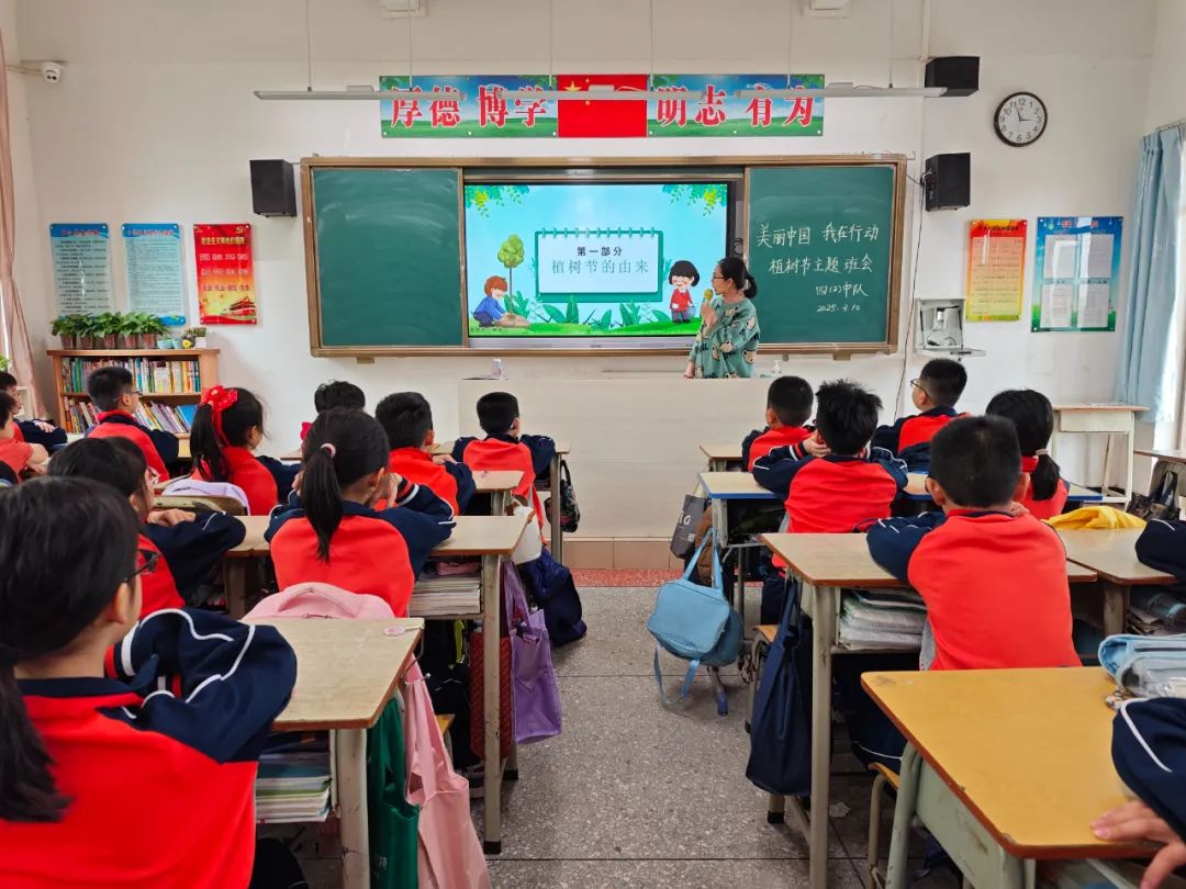 与此同时,为进一步深化生态教育内涵,构建覆盖全学段的实践育人体系,3月10日下午,该校48个班级同步开展了“美丽中国  我在行动”主题班会。通过观看植树造林纪录片、学习《森林法》科普知识、讨论环保案例等形式,同学们深刻认识到植树造林对改善生态环境、应对气候变化的重要作用,同时也坚定了参与环保行动的决心。
