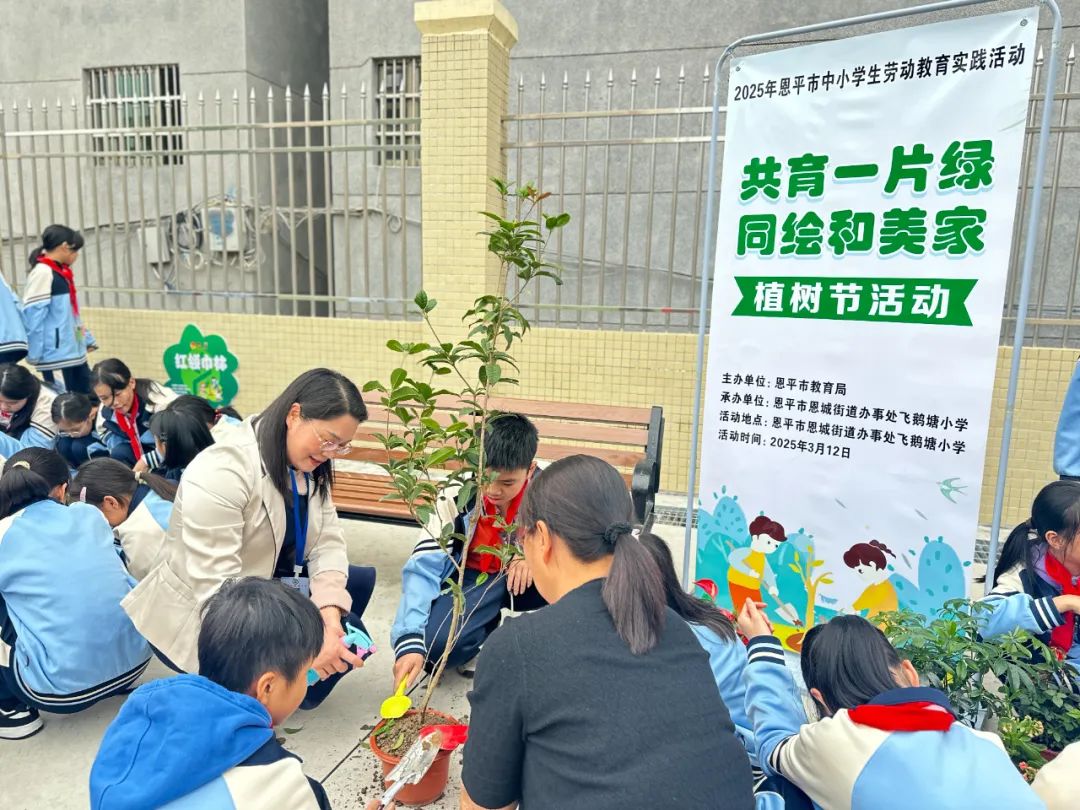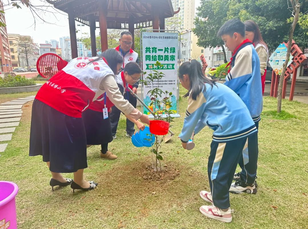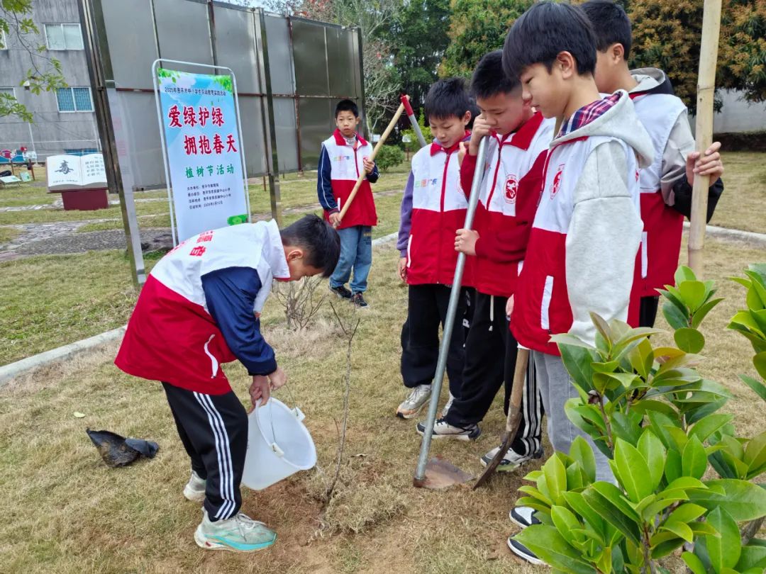 在融融春光中,恩城飞鹅塘小学以“共育一片绿,同绘和美家”为主题,组织了一场别开生面的植树节活动。本次活动以践行生态文明理念为核心,号召师生携手种下希望之苗,共同为校园添绿意,为家园绘和谐。