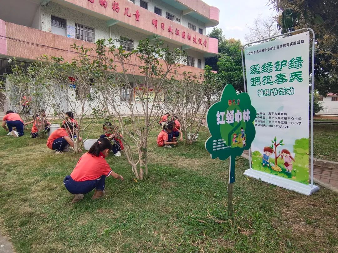 3月12日,快猫 牛江镇中心小学组织少先队员开展“爱绿护绿 拥抱春天”植树活动。