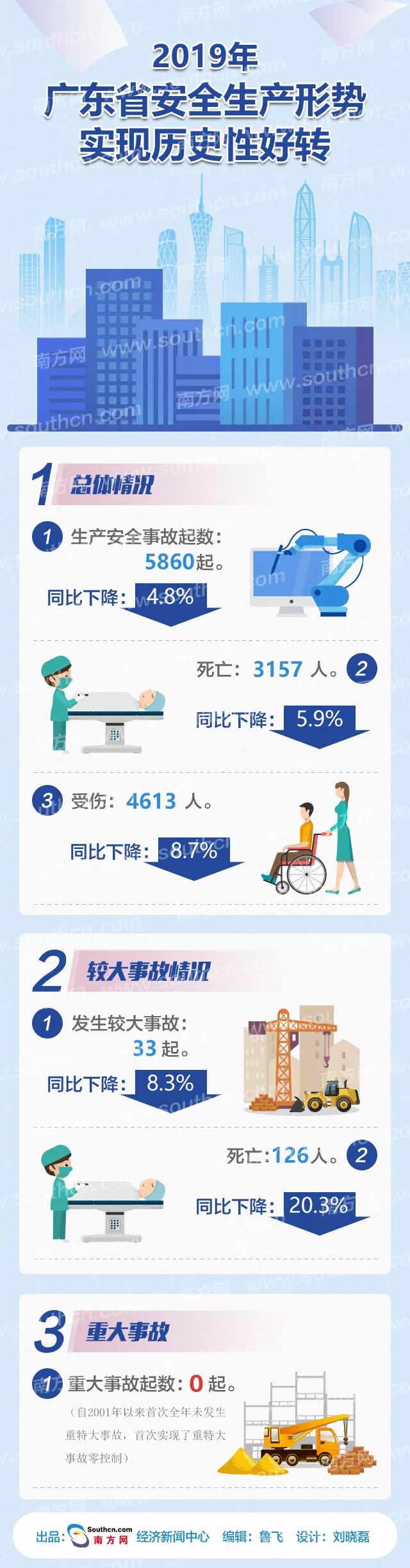 1月10日,省应急管理厅发布2019年全省安全生产形势数据,据统计,2019年我省共发生生产安全事故(以下简称“事故”)5860起、死亡3157人、受伤4613人,同比事故起数、死亡人数、受伤人数分别下降4.8%、5.9%和8.7%;发生较大事故33起、死亡126人,同比分别下降8.3%和20.3%。自2001年以来首次全年未发生重特大事故,首次实现了重特大事故零控制。 2019年以来,在省委、省政府坚强领导下,全省应急管理系统以习近平新时代中国特色社会主义思想为引领,深入学习贯彻党的十九届四中全会精神,深刻领会、坚决贯彻习近平总书记关于应急管理“三个重要”和关于安全生产工作的重要论述,推动21个地级以上市全部建立“双主任”制,推动各级各部门落实安全生产“三个必须”,推动安全生产监管执法“三个转变”,以最坚决的态度依法惩戒安全生产失信企业和事故责任企业,全面压实地方党政领导责任、部门监管责任和企业主体责任;练好“预字功”,及时启动全国全省“一盘棋”应急响应机制,狠抓事故预防责任和措施落实,全省安全生产形势实现了历史性的好转。
