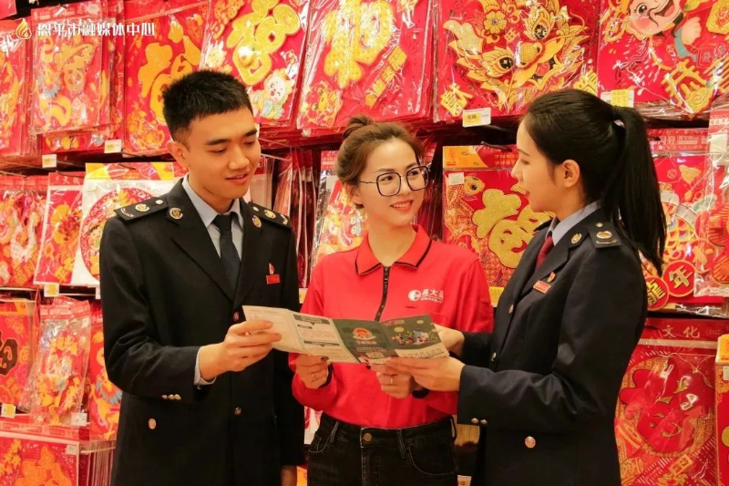 税务局青年助企团深入辖区市场、超市、企业等,主动送政策、送祝福、送温暖,助力各类市场主体备战年货市场。
