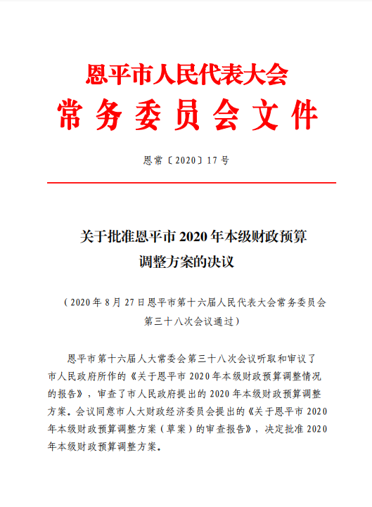 关于批准快猫 2020年本级财政预算调整方案的决议