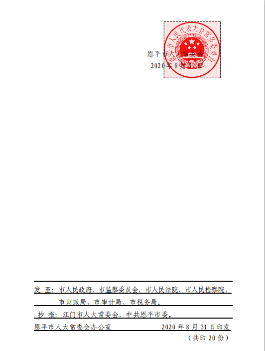 4.地方政府一般债务转贷收入增加50050万元。根据《关于下达2020年第一批再融资债券转贷资金的通知》(江财外〔2020〕29号)上级下达我市再融资债券转贷资金50050万元,其中49956万元属由江门划转我市挂账债务。
