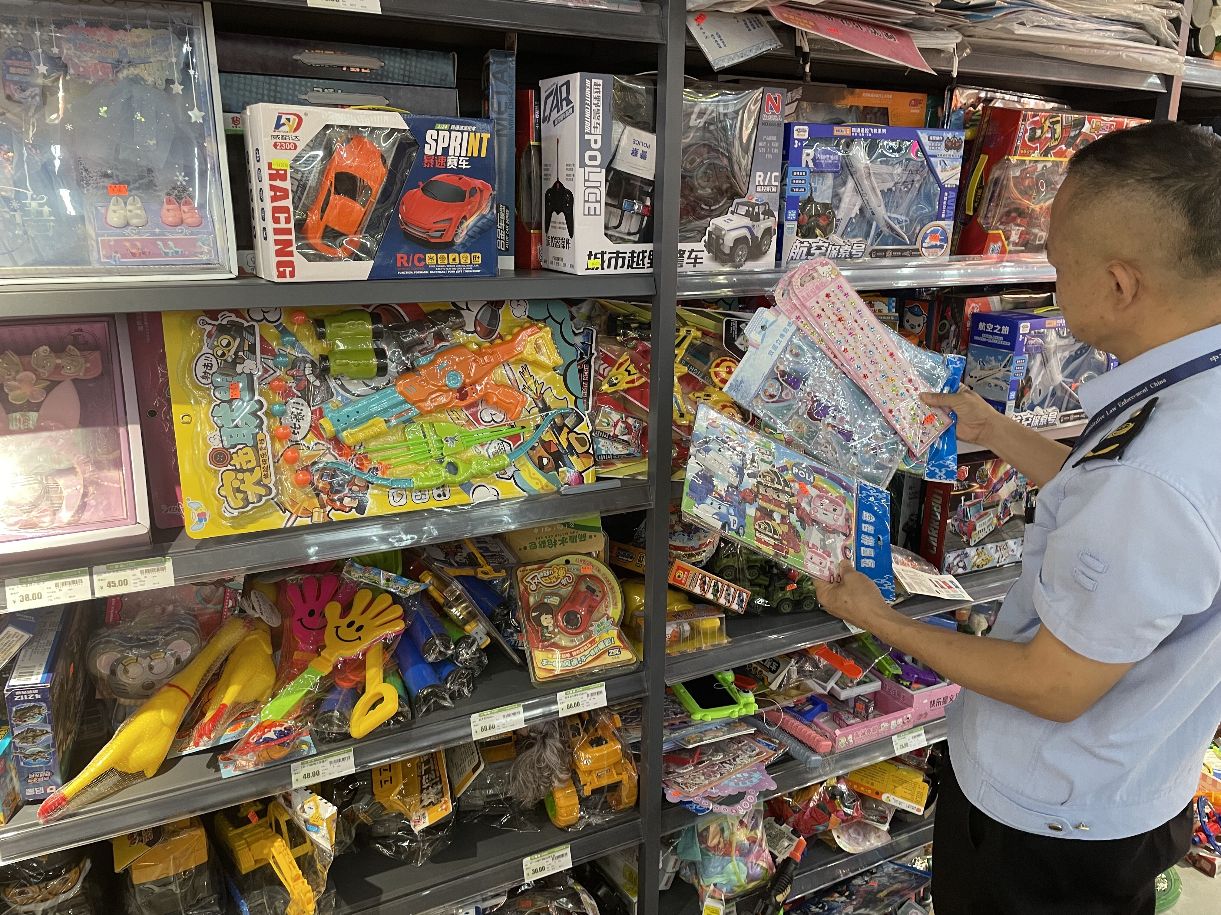 检查中,执法人员突出“三查三看”,重点对校园周边文具店、食品店、百货店等重点区域开展排查检查,有力净化我市校园周边环境,助力青少年身心健康发展。一查经营主体证照,看校园周边经营主体是否存在无证无照经营、超范围经营行为;二查进货台账,看经营主体是否存在未落实索证索票制度问题;三查商品标识,看经营主体是否严格落实进货查验制度,是否销售“仿真手雷”“炸包”等存在安全风险玩具,是否销售假冒伪劣、“三无”、无CCC认证儿童玩具和学生用品行为。期间,全市市场监管部门共出动执法人员113人次,检查校园周边经营场所47家次,当场责令下架“炸包”“臭包”等网红有毒有害玩具5件,并就经营者有效落实销售玩具产品质量安全管理措施进行现场指导整改。