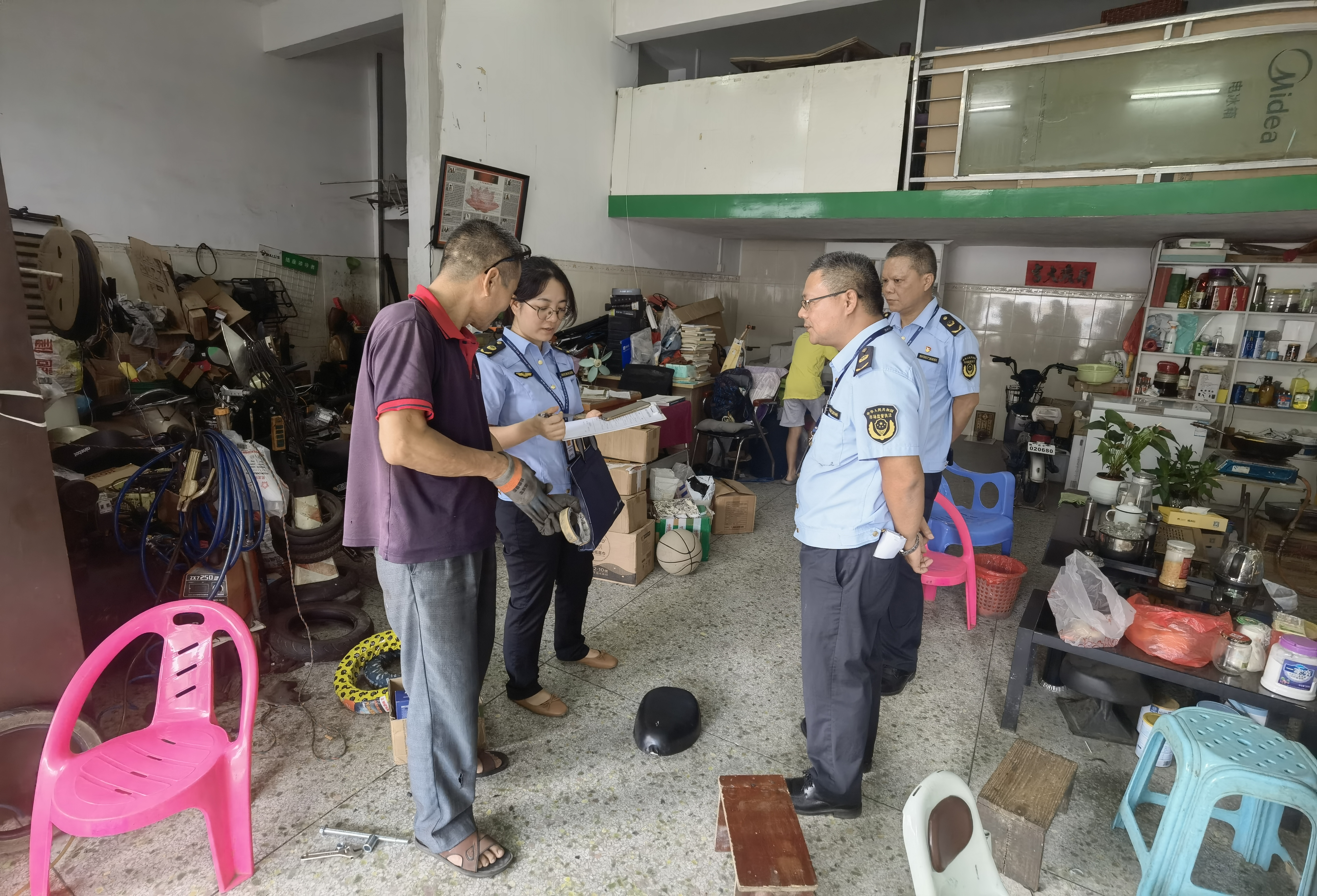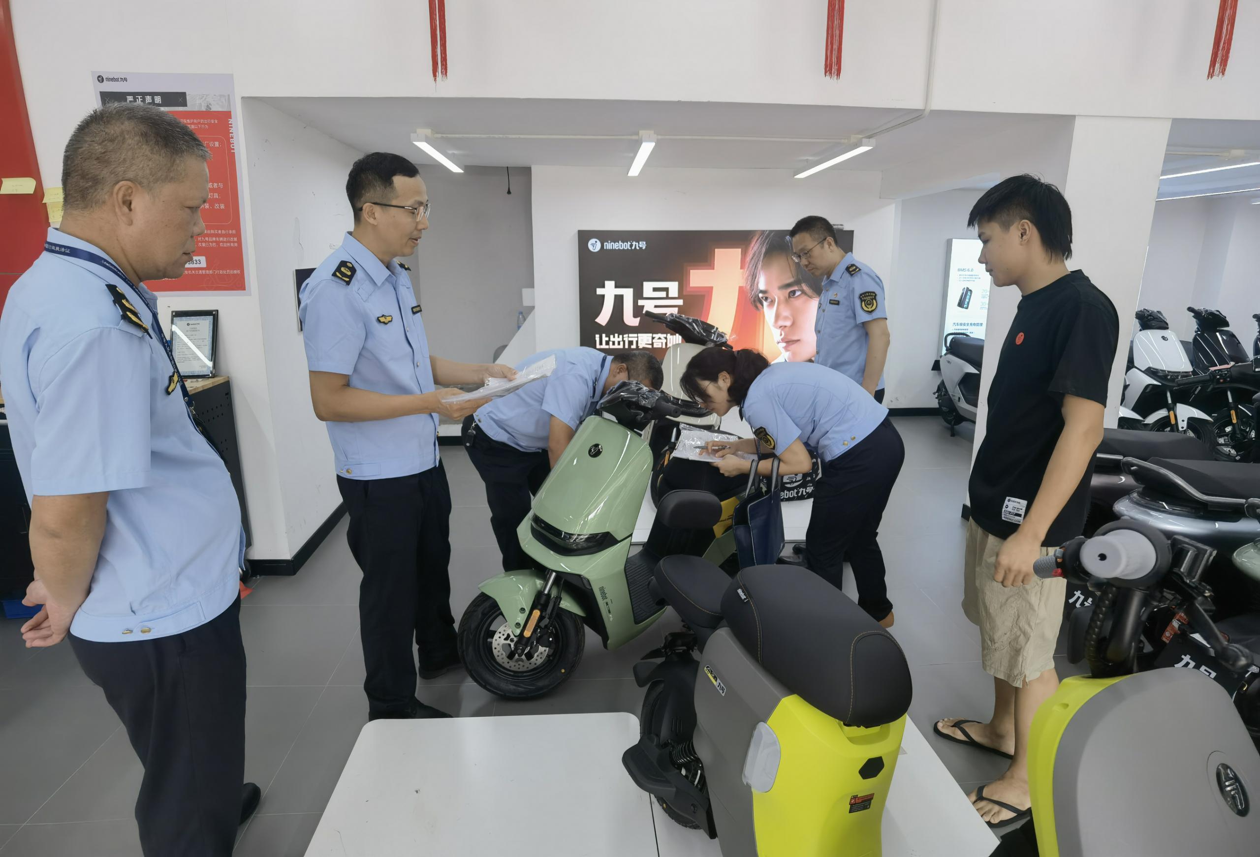为进一步提升电动自行车安全隐患全链条整治行动成效,有效推动生产和销售企业落实质量安全主责任,根据江门市市场监管局开展交叉检查工作要求,8月14日上午,快猫 市场监管局联合开平市市场监管局开展电动自行车安全隐患全链条整治行动检查工作。检查组在辖区内抽查了10家电动自行车销售单位及8家维修店铺,通过查阅企业台账资料、现场核查等方式,围绕电动自行车安全隐患全链条专项整治工作要求和工业产品“两个规定”落实情况,重点检查销售单位主体责任平台录入情况,是否亮照经营,是否配备质量安全管理人员、落实“日管控、周排查、月调度”等制度以及进货查验、入库验收、销售台账等主体责任落实情况,同时严格核查产品质量安全状况以及是否有制假售假及改装等行为。