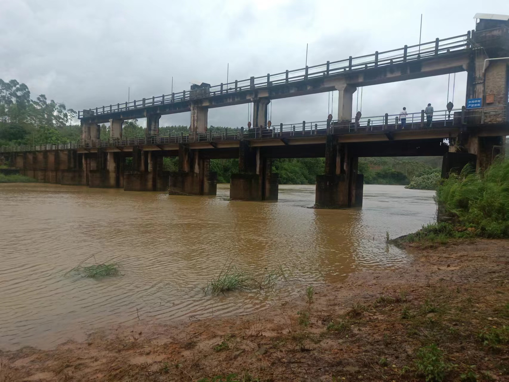 蓝田水闸位于我市横陂镇蓝田村附近大河中下游,距离横陂镇15公里,于1963年3月建成投入使用,并于1982年进行了改建。水闸控制集雨面积82平方公里,原设计过闸流量为每秒2030立方米,是一宗以蓄水灌溉为主、兼顾挡潮及两岸交通的大(2)型拦河水闸。