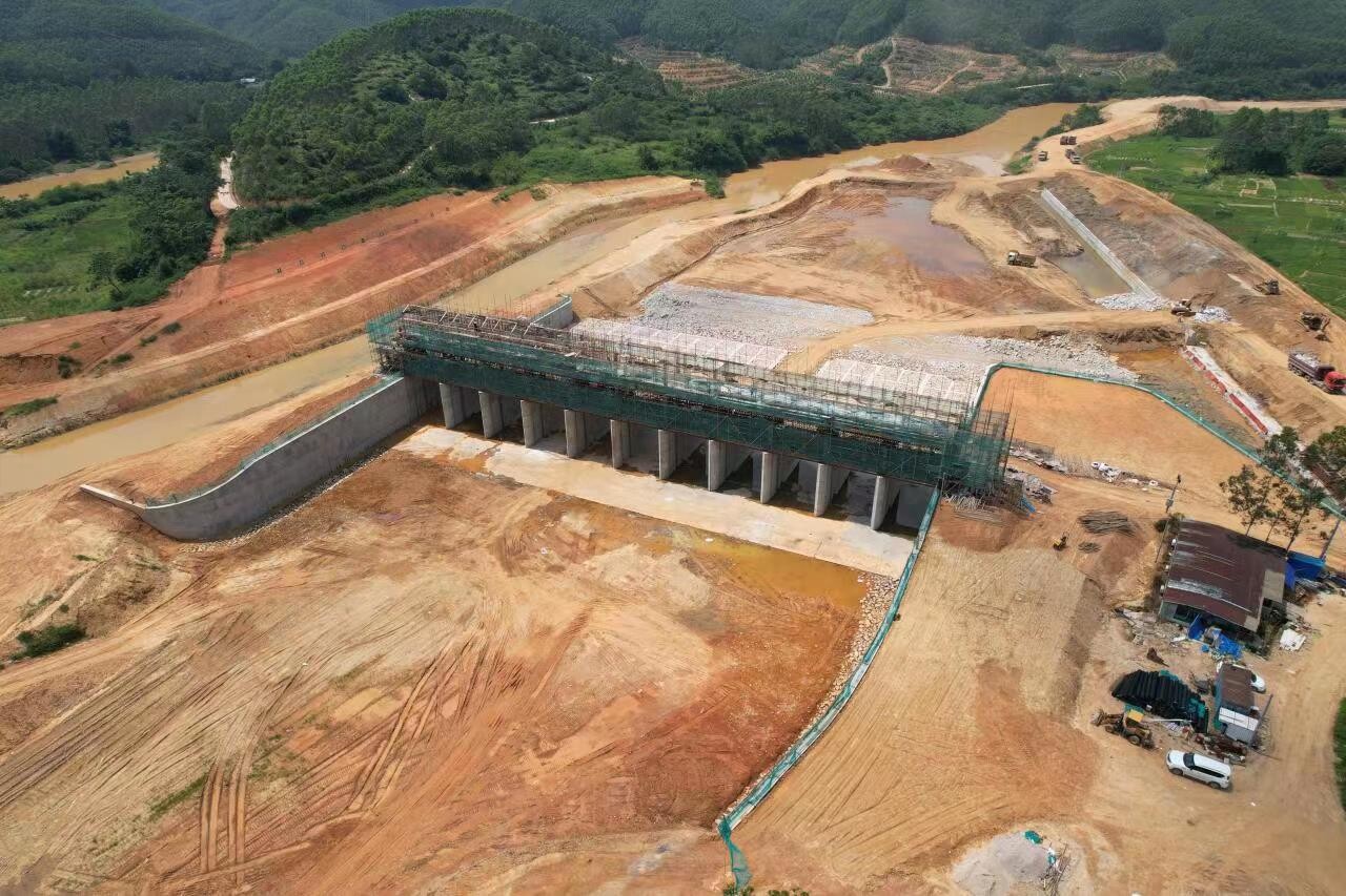 快猫 蓝田水闸重建工程于2022年9月中旬开工建设,目前已完成水下工程建设,已完成投资4500万元,占总工程量的70%。计划于6月中旬拆除围堰,现在正在进行水闸启闭层建设。