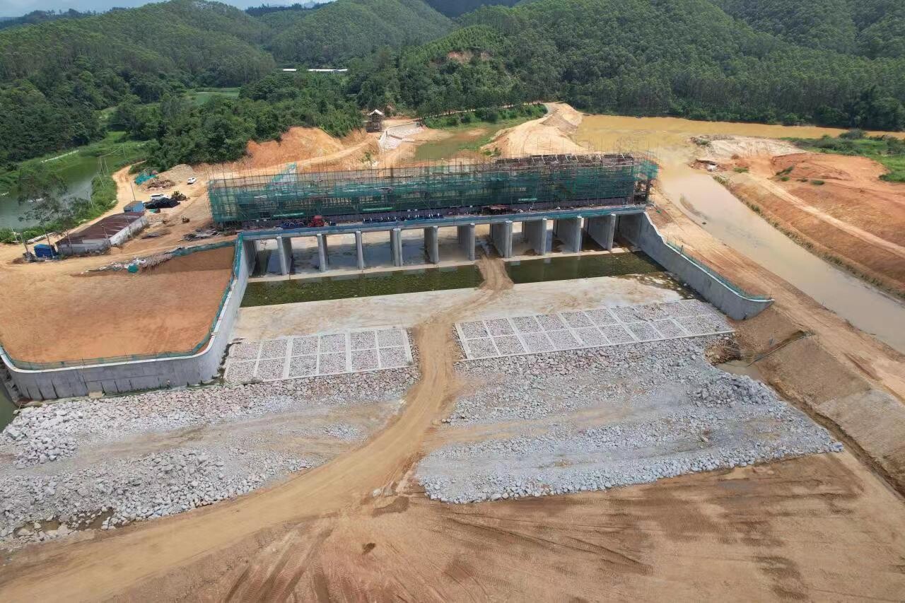施工单位结合施工设计安排,科学制定施工方案,并结合蓝田河上游的集雨面积较大,过闸流量较大的情况,通过围堰分流的模式,在枯水期开挖倒流渠,将上游的原水闸过流的水流分流,达到工程施工和汛期排洪两不误的效果,确保工程安全度汛,保障当地人民生命财产安全。