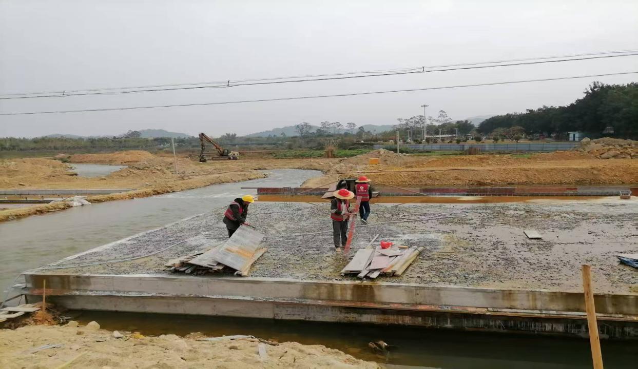 为保春耕蓄水江北水陂(水闸)在加紧施工