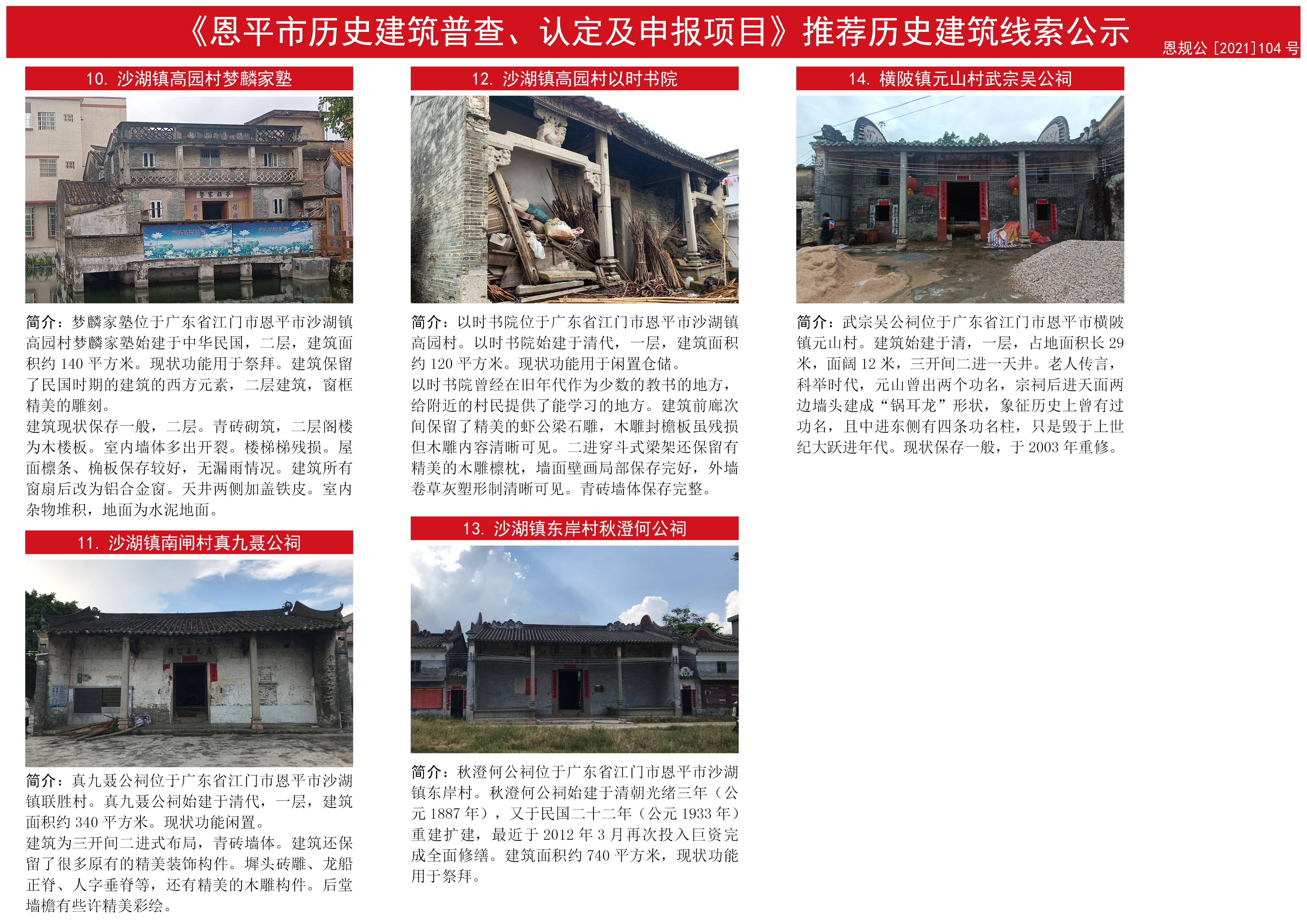 根据《广东省历史建筑测绘建档三年行动计划(2020—2022年)》、《广东省住房和城乡建设厅关于历史文化街区和历史建筑保护工作进展情况的通报》等相关通告及要求,特进行批前公示以征求公众意见。可在公示期限内通过