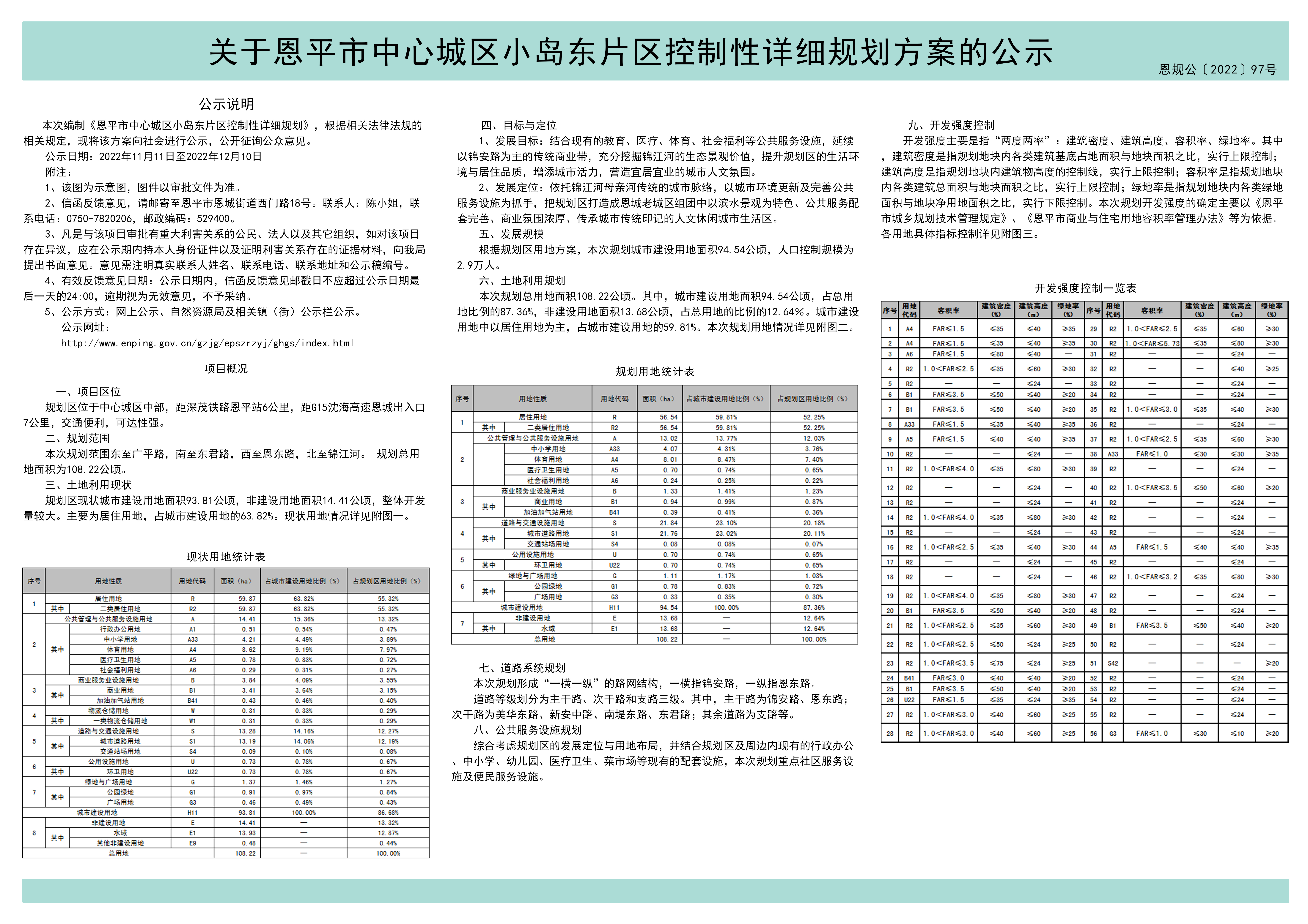 中心城区小岛东片区控制性详细规划》,根据相关法律法规的相关规定,现将该方案向社会进行公示,公开征询公众意见。