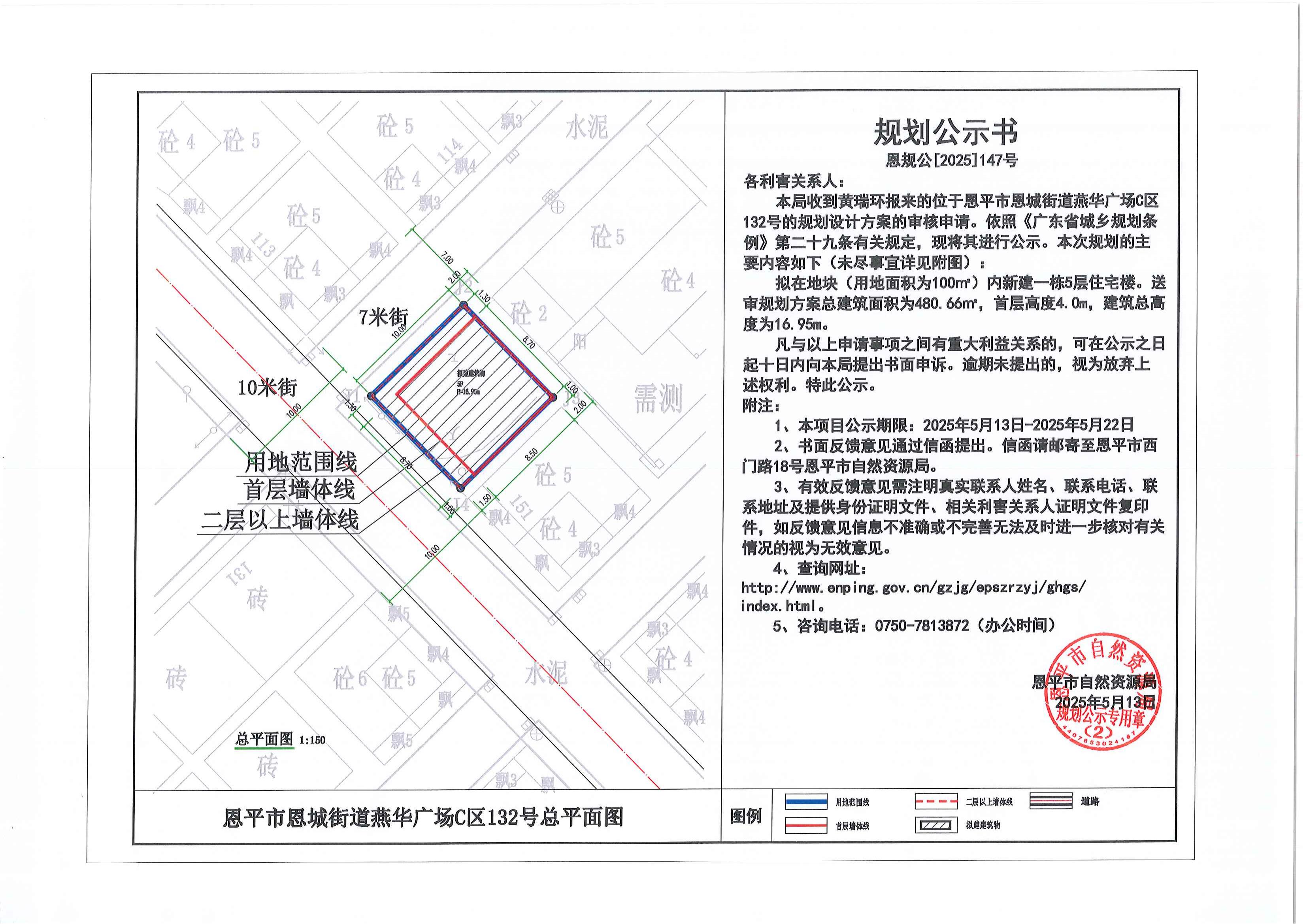 恩规公[2025]147号 关于快猫 恩城街道燕华广场C区132号(黄瑞环)的规划公示书