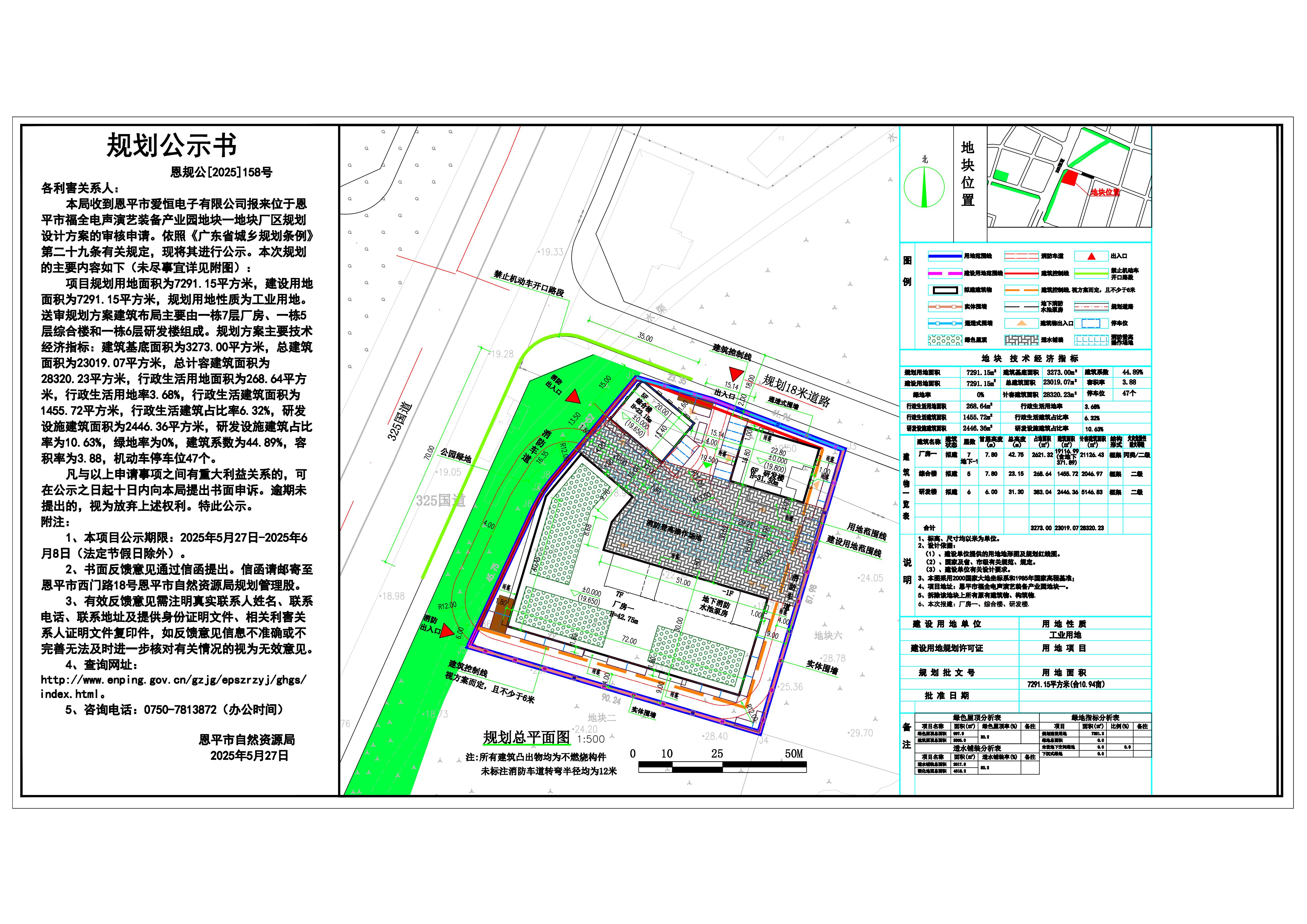 恩规公[2025]158号 关于快猫 福全电声演艺装备产业园地块一(快猫 爱恒电子有限公司)的规划公示书