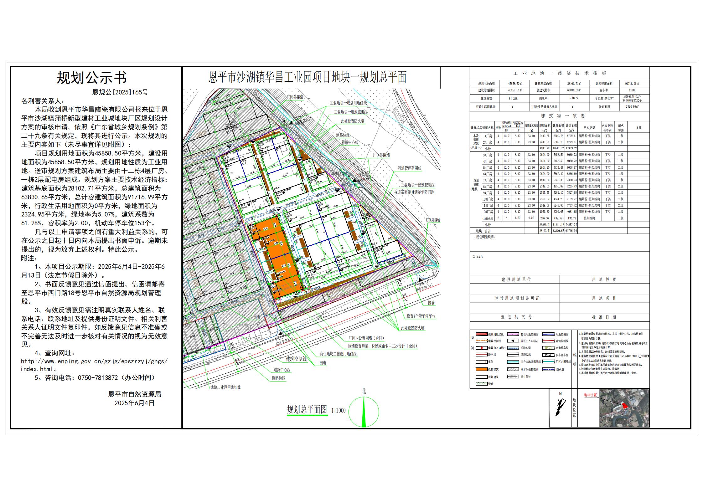 恩规公[2025]165号 规划公示书 关于快猫 沙湖镇蒲桥新型建材工业城(快猫 华昌陶瓷有限公司)的公示