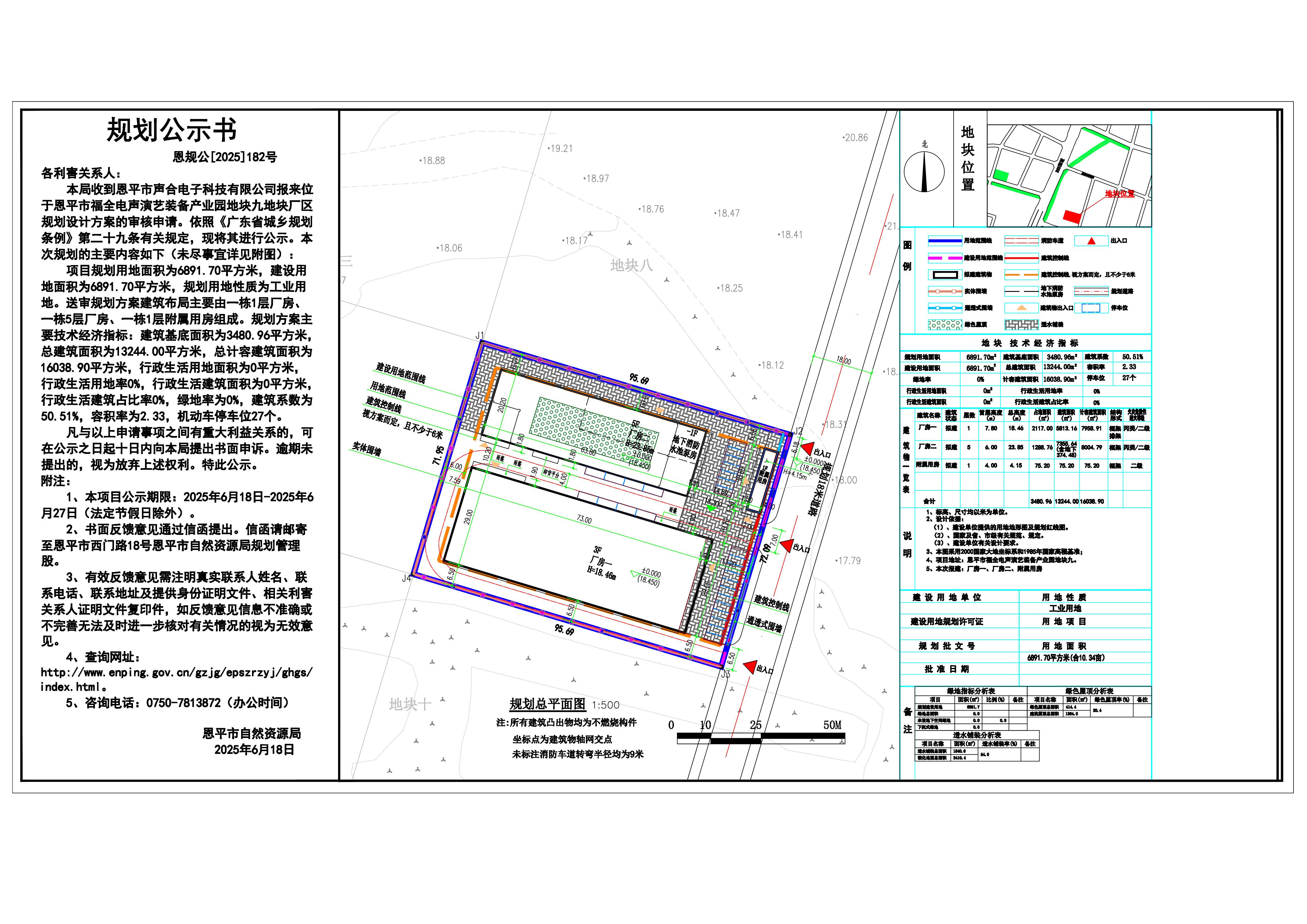 恩规公[2025]182号 关于快猫 福全电声演艺装备产业园地块九(快猫 声合电子科技有限公司)的规划公示书