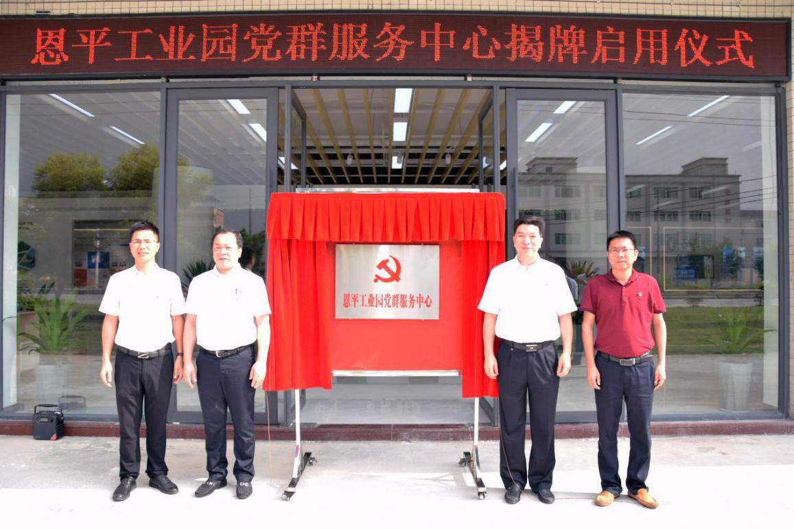 市领导为恩平工业园党群服务中心揭牌。