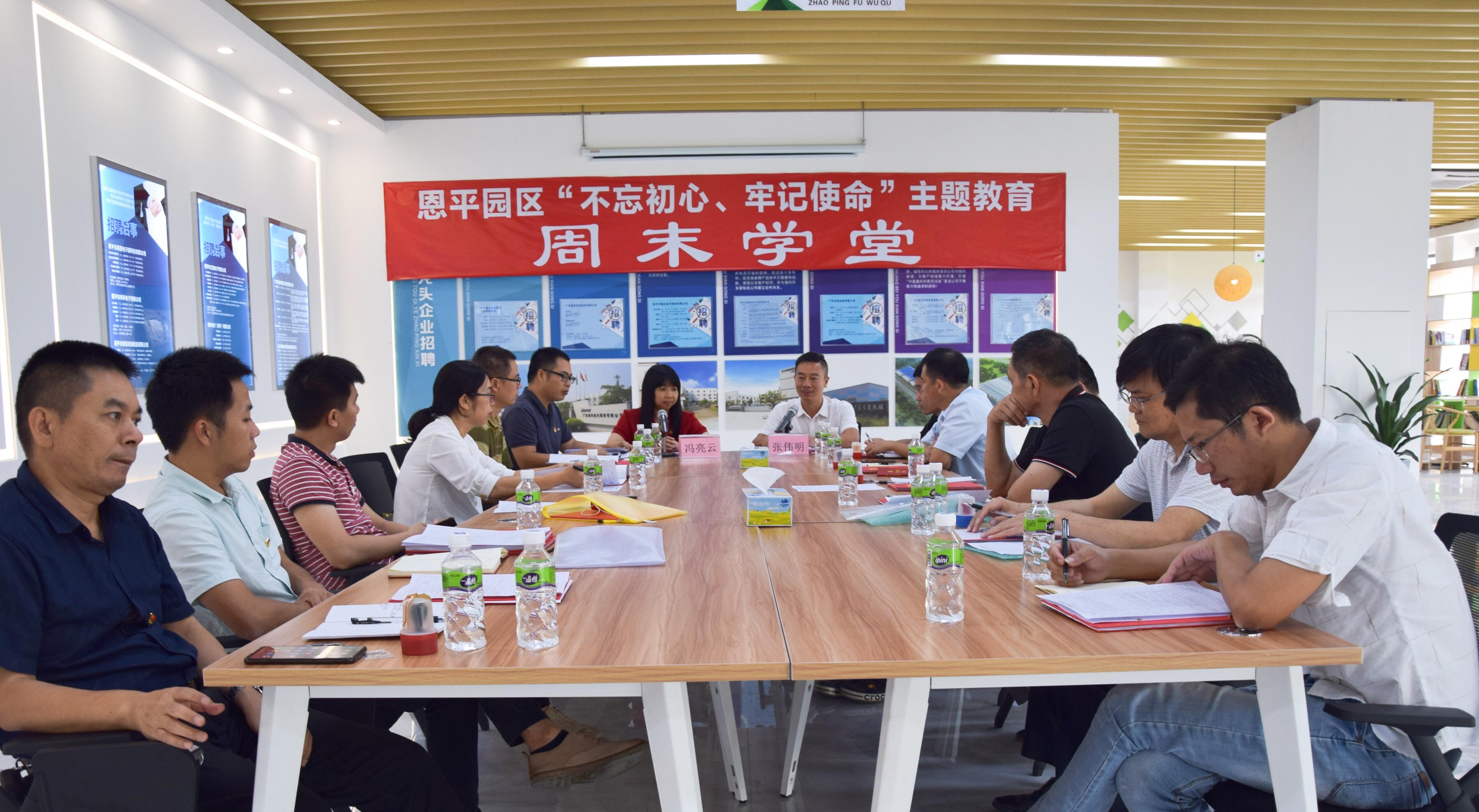 为推进“不忘初心、牢记使命”主题教育深入开展,10月13日,恩平园区党工委创新学习机制,在园区党群服务中心举办“周末学堂”,主要目的是利用周末为园区非公企业党支部书记、党员集体“充电”,在坚持个人自学的同时,指导他们根据不同工作领域制定个性化的主题教育学习课堂,有针对性地提升学习效果,全力确保主题教育在园区非公企业中取得实实在在的成效。
