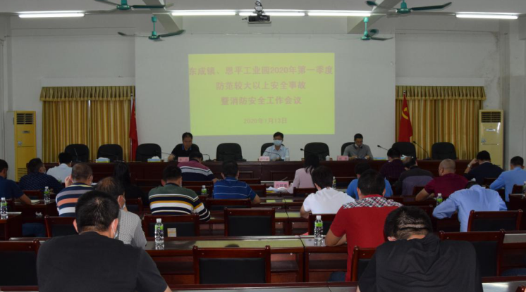 为贯彻落实上级有关当前安全生产工作部署要求,结合东成镇、恩平工业园工作实际,4月15日下午,东成镇、恩平工业园召开了2020年第二季度防范较大以上安全事故暨消防工作会议。东成镇、恩平工业园领导班子成员,部门负责人,村(社区)党组织书记、企业代表等60多人参加了会议。