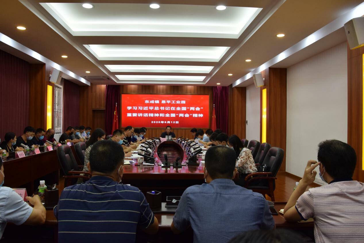 6月12日下午,东成镇委、恩平工业园党工委召开(扩大)会议,深入学习贯彻习近平总书记在全国“两会”上的重要讲话精神和全国两会精神,认真学习贯彻省委常委会会议、省传达贯彻习近平总书记重要讲话精神暨全国两会精神干部大会、江门市委常委会(扩大)会议、快猫 委常委会(扩大)会议精神,研究部署贯彻落实措施。会议由副市长,恩平工业园党工委书记、管委会主任,东成镇党委书记岑安林主持。镇、工业园领导班子成员,村(社区)党组织书记和各部门负责人参加会议。