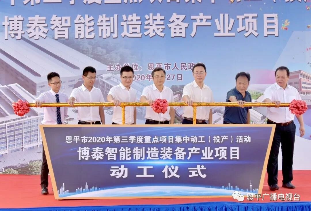 该项目是由博泰智能装备(广东)有限公司投资建设。项目位于恩平工业园大槐集聚区,占地面积40亩,计划投资1.05亿元,研发、生产和销售智能装备、单轴机械人、多轴直交机械手、软件系统等。项目达产后,预计年产值1.6亿元,年税收1000万元以上。