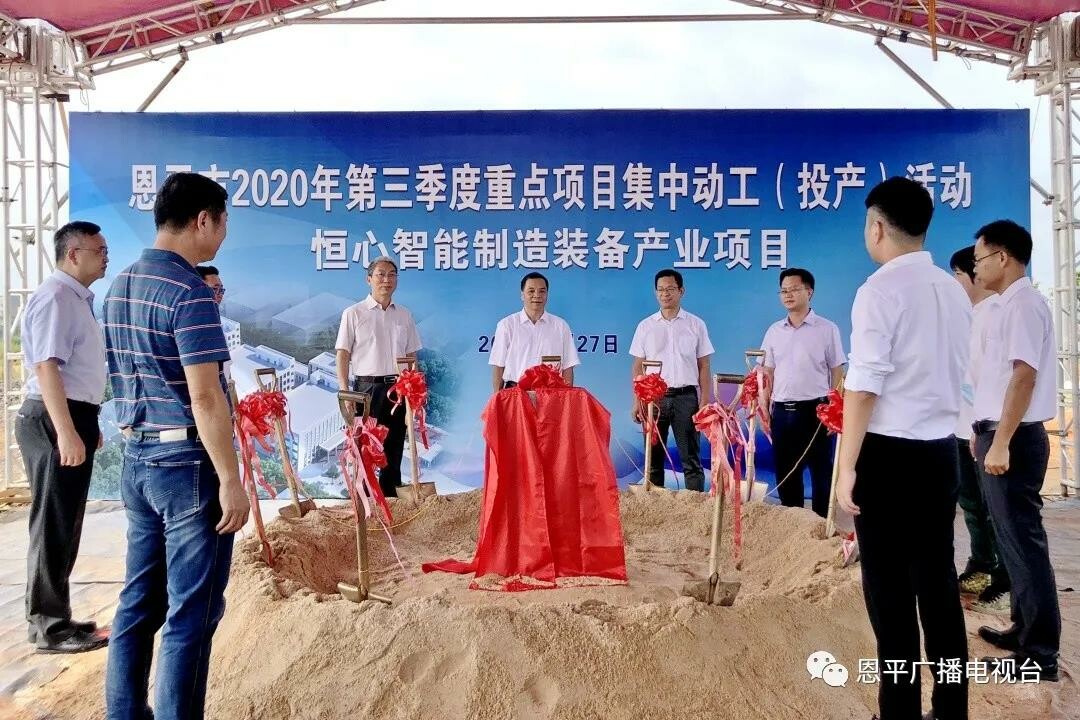 据了解,恒心智能制造装备产业项目由三恒精密工业(深圳)有限公司投资建设。项目位于恩平工业园大槐集聚区45号,占地面积30亩,总投资1.05亿元,计划投资兴办智能制造装备项目,主要研发、生产和销售智能装备、智能家居用品、智能家用电器、电子产品等。项目达产后,预计年产值1.5亿元,年税收800万元以上。