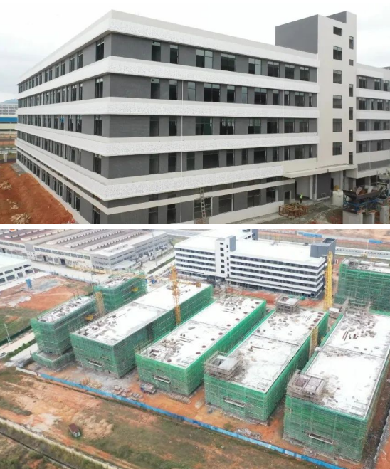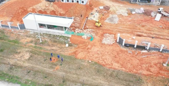 在项目建设现场,数幢厂房和综合楼拔地而起,整齐分布。在作业区域,挖掘机械快速运转、轰鸣声不断,工人们正如火如荼地进行着室内装修和路面施工,绿化道路、给排水系统等配套设施建设正加快推进。