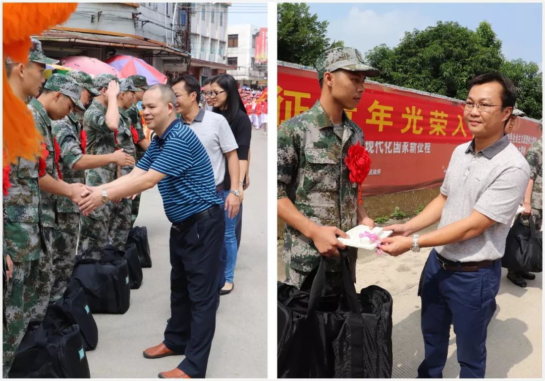 送兵仪式上,镇领导为7名入伍新兵戴上光荣花,与新兵亲切握手道别,并一起合影留念。应征入伍的新兵,胸戴大红花,穿着整洁的军装,英姿飒爽,在喜庆的鞭炮声中,带着父老乡亲的谆谆嘱托和殷切期望,踏上征程。