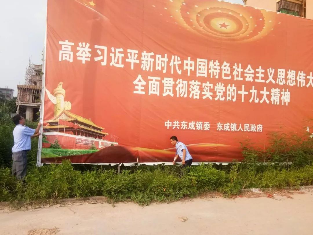 镇城监中队加固户外广告牌
