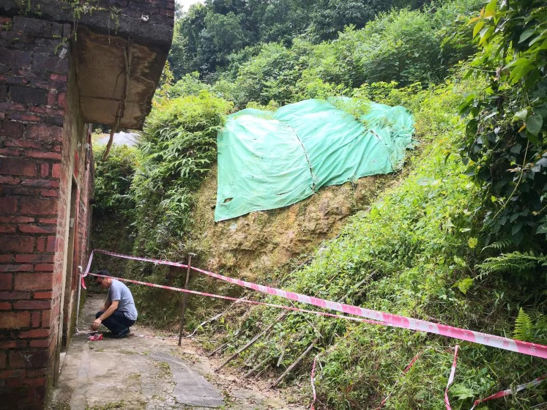 镇国土所排查地质灾害隐患,拉起警戒线