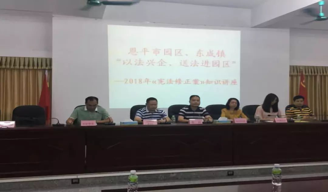 为提高企业的法律风险防范意识,促进企业学法、知法、守法、用法,以法兴企,近日,恩平园区、东成镇联合市法学会、市委依法治市办、市普法办、市工商联、江门中立法律服务社恩平服务站举办主题为“以法兴企 送法进园区”文化沙龙活动。市委政法委副书记李水相,园区党工委委员、东成镇委委员李兵,市司法局相关业务负责人,园区、东成镇130多家企业代表参加了活动。