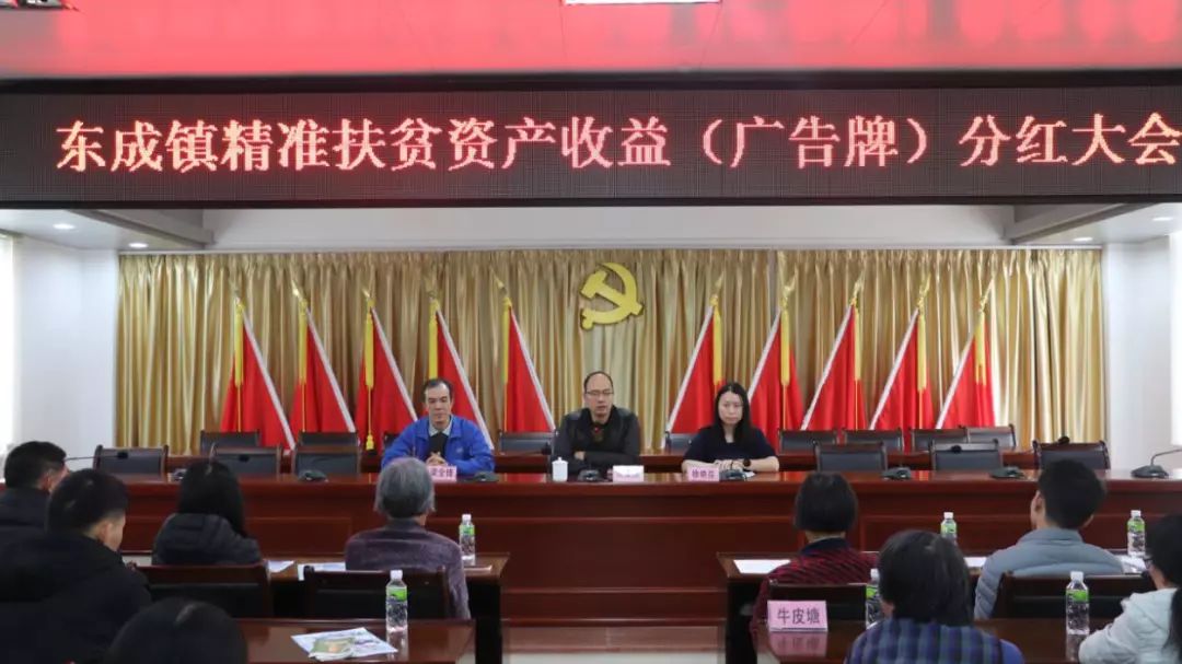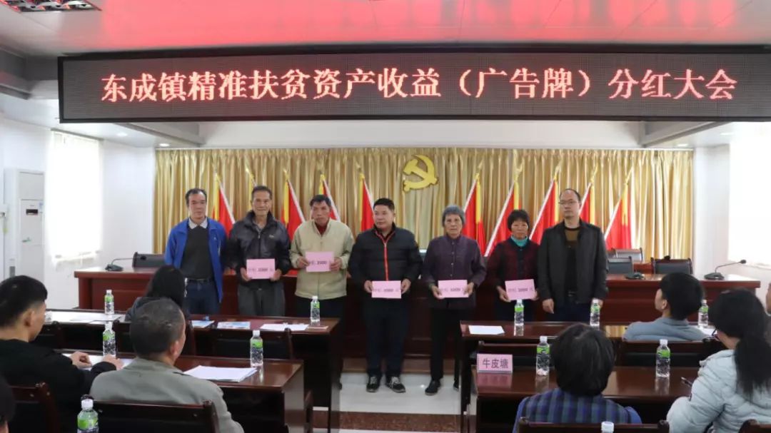 会议指出,自开展精准扶贫精准脱贫工作以来,东成镇下大力气打造资产收益项目,集中资源和资金等要素,在上级扶贫部门的指导和支持下,筹集了47万多元在深茂铁路恩平站场附近新建两个大型户外广告牌。2018年8月,通过公开招(投)标竞得19.4万元/年的收益,成功实现了资产收益的长效性和稳定性,建立了常态化收入工作机制,带动了全镇建档立卡精准扶贫户稳定增收脱贫。