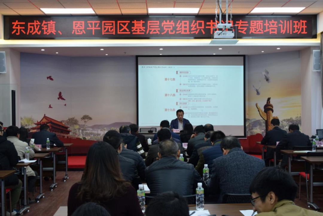 为贯彻落实《广东省加强党的基层组织建设三年行动计划(2018-2020年)》,着力推进基层党组织“头雁”工程,提升基层党组织书记综合能力。1月17日下午,东成镇、恩平园区在泉林党群服务中心举办基层党组织书记专题培训班,副市长,恩平园区党工委书记、管委会主任,东成镇委书记岑安林进行专题授课。东成镇、恩平园区部分班子成员及基层党组织书记共50多人参加。