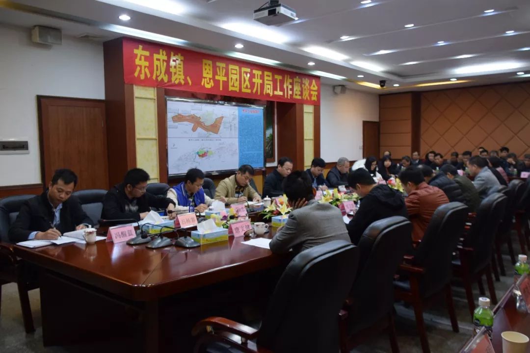 2月26日上午,东成镇、恩平园区召开开局工作座谈会。镇、园区领导班子成员,村(社区)党组织书记、各部门主要负责同志共50多人参加了座谈会,共同探讨2019年工作思路和工作重点,谋划新一年新发展。会议由副市长,园区党工委书记、管委会主任,东成镇委书记岑安林同志主持。