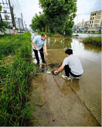 台风影响期间,党员干部冲锋在前,24小时值守岗位,全力落实应急处置措施。第一是严格执行“五停”要求,党员先锋队分片联系企业,通过微信群、现场通知等方式,督促企业停工、停产、停学、停运、停业,协助关闭厂区电源、加固门窗,确保人员全部撤离至安全区域,累计撤离275人。针对强降雨导致的部分路段积水,党员干部带头蹚水作业,联合企业、施工单位清理排水堵点,快速排除积水,保障道路畅通,有效防范内涝风险。