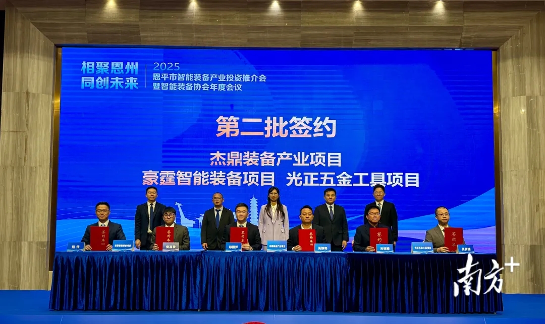 11月17日,2025快猫 智能装备产业投资推介会暨智能装备协会年度会议举行,近60家来自恩平本地及东莞、佛山、深圳等地的智能装备上下游企业齐聚一堂。现场,10个智能装备优质项目集中签约,总投资超18亿元,为区域产业升级与高质量发展注入澎湃动能。