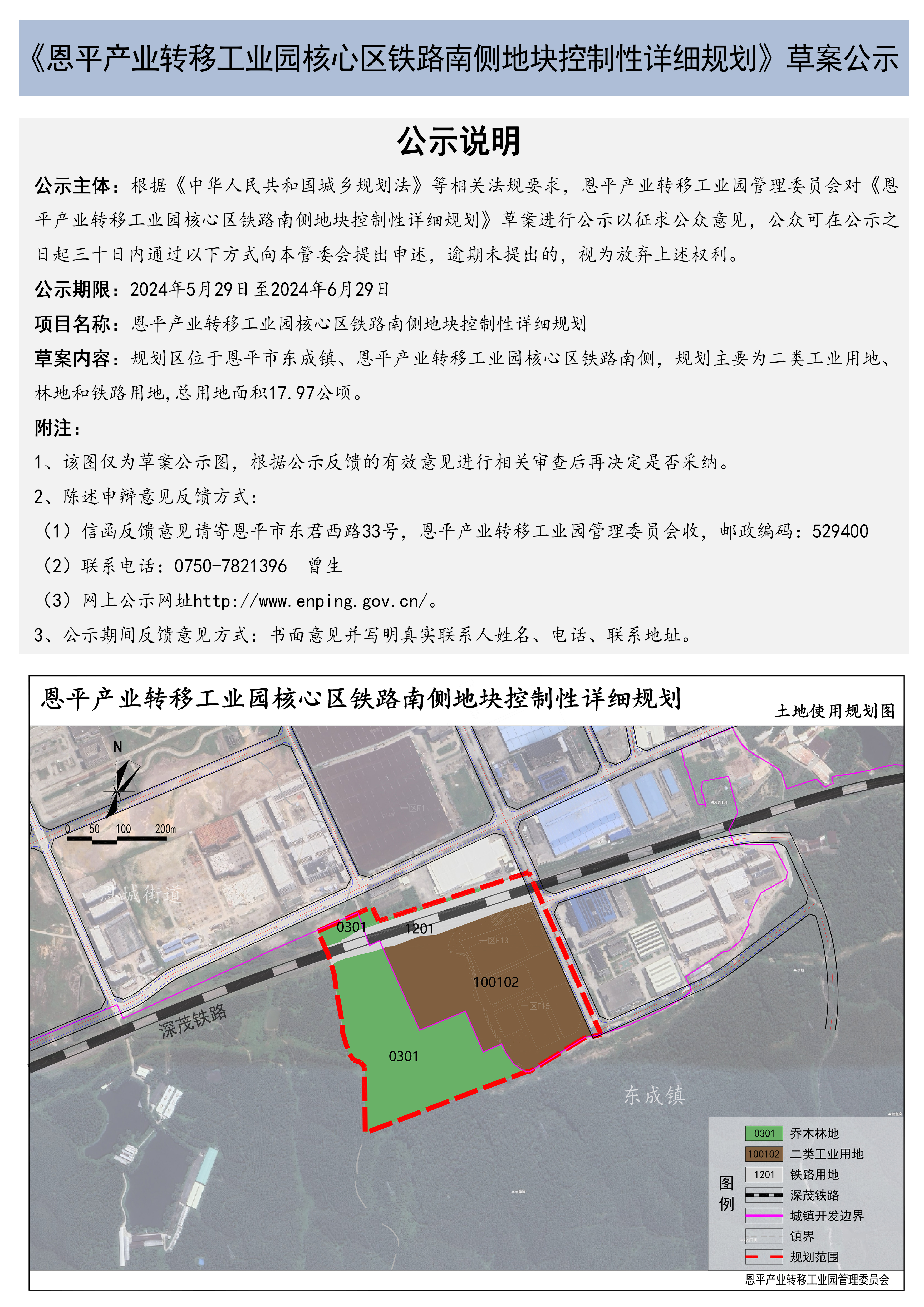 《恩平产业转移工业园核心区铁路南侧地块控制性详细规划》草案公示.jpg