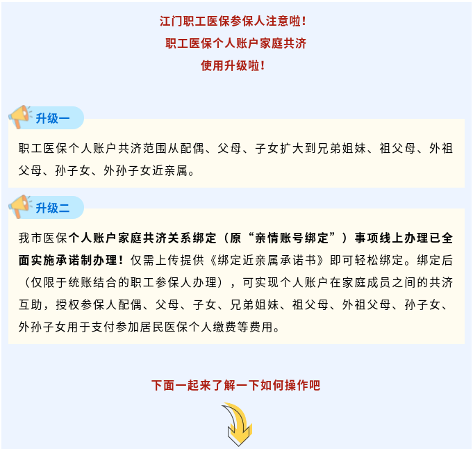 职工医保个人账户家庭共济关系绑定范围扩大!在江门线上办理仅需提供承诺书!