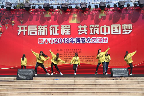 本次演出的主题为“开启新征程 共筑中国梦”,演出的内容丰富。舞蹈、独唱、联唱、乐器演奏等精彩节目让现场观众目不暇接。伴着《喜庆》,充满活力的舞蹈拉开了文艺演出的序幕,演员们用优美的舞姿激情展现喜迎新春的欢乐。《寄语新时代》、《万马奔腾启征程》、《美丽恩洲》等节目悉数上演,表达了对新一年的美好祝愿。精彩的演出也赢得了现场观众的掌声与欢呼声。