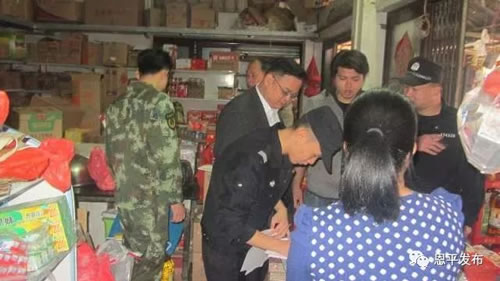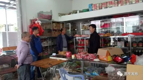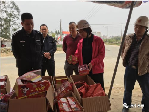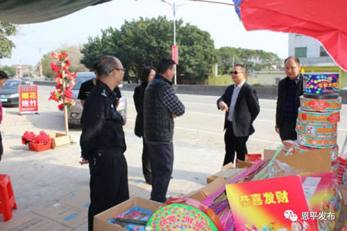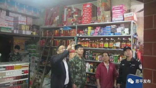 恩城街道办负责人率队深入茶坑、联合、米仓等村委会的烟花爆竹销点和废品回收站,认真检查各烟花爆竹销售点是否证照齐全,消防安全措施是否到位,销售点安全距离是否足够,并提出整改要求。
