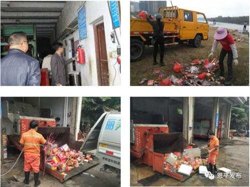 18日上午,牛江镇委镇政府联合镇安监、派出所、城监等相关部门组成专项检查组,在全镇辖区开展未燃尽烟花爆竹垃圾清运处置专项安全大检查行动,重点检查全镇的垃圾收集点、烟花爆竹零售点以及百货商店等。